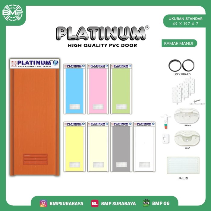Kamar mandi merupakan suatu ruangan yang seringkali berhubungan dengan aktivitas menggunakan air. Pintu tipe pvc ini juga dapat diterapkan di ruangan lain, terutama di kamar yang berdekatan dengan air. Maka tak heran, jika kamar mandi terdiri atas beberapa komponen yang tidak mudah terkena korosi, pelapukan dan penjamuran. Dan sering di pakai untuk kamar mandi, tempat untuk shower. Semakin bagus gambarnya, tentu semakin mahal harganya.